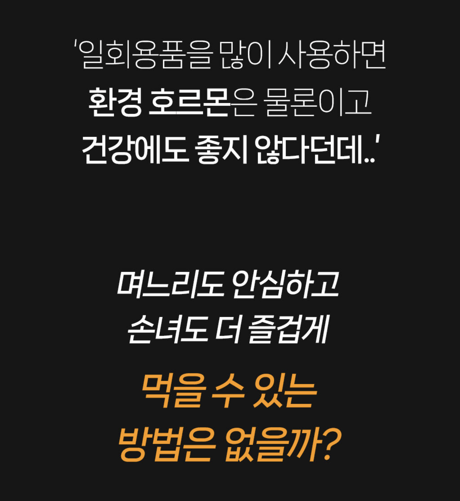 “일회용품 많이 사용하면 환경 호르몬은 물론이고, 건강에도 좋지 않다던데… 안심하고 더 즐겁게 먹을 수 있는 방법은 없을까?”