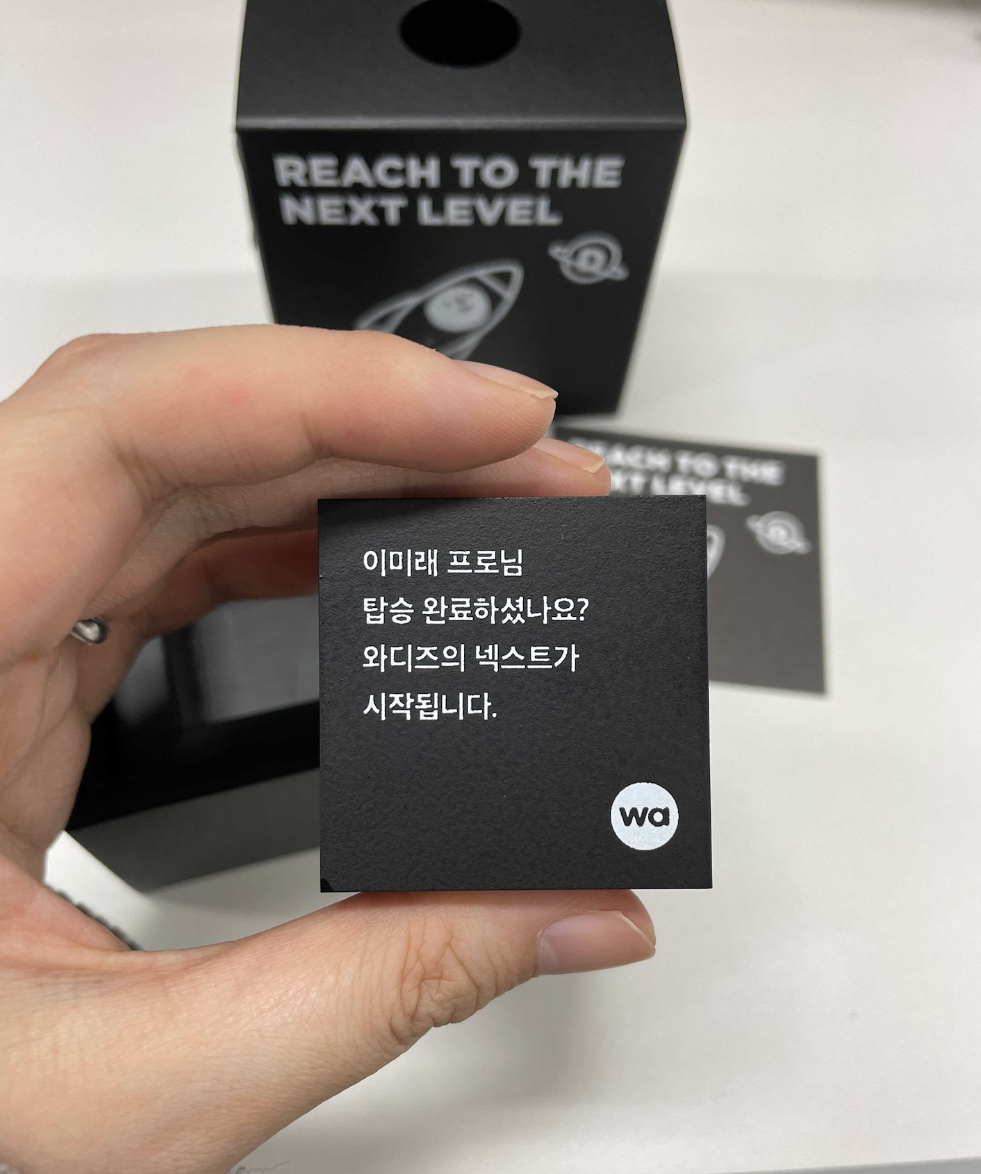 뭐니 뭐니 해도 행사의 꽃은 특별한 선물이 함께 해야겠죠. 식사를 하며 진국이들에게 메시지 카드를 한 장씩 나눠주었어요. 그리고 각자 ‘와디즈에게 하고 싶은 이야기’를 적어 보았어요.